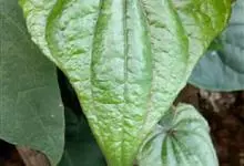 穿龙薯蓣是薯蓣科薯蓣属藤本植物。穿龙薯蓣根状茎横生,圆柱形,多分枝,栓皮层显著剥离;茎左旋,近无毛,单叶互生;叶片掌状心形,变化较大,茎基部边缘作不等大的三角状浅裂、中裂或深裂,顶端叶片小,近于全缘,…全部>>