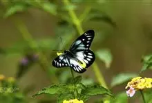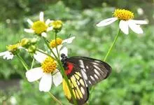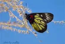 报喜斑粉蝶是粉蝶科斑粉蝶属的一种动物,又名红肩粉蝶、藤粉蝶等。幼虫群集性很强,从同一卵块孵化出的幼虫,幼龄期全部群集在一起取食,高龄幼虫常分散成小群。幼虫群集危害叶片,造成秃枝,严重者可将树吃成光杆,…全部>>