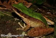 绿臭蛙,无尾目蛙科臭蛙属。雄蛙体长78~88mm,雌蛙体长93~131mm。头部扁平,头长略大于头宽,吻端钝圆,瞳孔横椭圆形,眼间距与上眼睑等宽;鼓膜小,…全部>>