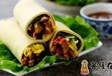 腐皮卷素菜是一道广东省的传统名菜,属于粤菜系。把香菇用清水浸软,去蒂,切细丝,胡萝卜,榨菜分别洗净,切细丝,豆芽,韭黄分别洗净,韭黄切段。用2汤匙油爆香姜丝,胡萝卜,榨菜,放入香菇同炒透,将豆芽放入…全部>>