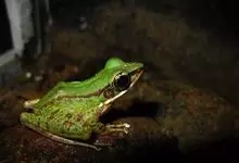 绿臭蛙,无尾目蛙科臭蛙属。雄蛙体长78~88mm,雌蛙体长93~131mm。头部扁平,头长略大于头宽,吻端钝圆,瞳孔横椭圆形,眼间距与上眼睑等宽;鼓膜小,…全部>>