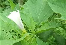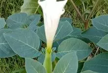 曼陀罗,茄科曼陀罗属一年生大型草本植物,全株光滑。有臭气;叶呈广卯形,边缘具不规则波状浅齿裂;花单生于枝杖间或叶腋,直立,有短梗;花萼是筒状裂片三角形,颜色为白色或淡紫色;果实为蒴果卵状,…全部>>