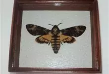 鬼脸天蛾,是鳞翅目天蛾科面形天蛾属动物。成虫翅展100~125毫米,体黑褐色;胸背有骷髅形斑纹;卵圆球形,直径约2毫米,淡黄绿色,表面光滑;老熟幼虫体长70~90毫米,蛹体长约56毫米;前翅为褐色,…全部>>