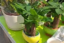 瓜栗 Walp. ),俗称发财树,木棉科小乔木,高4-5米,树冠较松散,幼枝栗褐色,无毛。小叶具短柄或近无柄。花单生枝顶叶腋;花梗粗壮,被黄色星状茸毛,脱落;萼杯状,近革质;花瓣淡黄绿色,狭披针形…全部>>