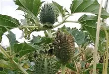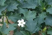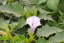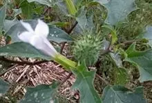 曼陀罗,茄科曼陀罗属一年生大型草本植物,全株光滑。有臭气;叶呈广卯形,边缘具不规则波状浅齿裂;花单生于枝杖间或叶腋,直立,有短梗;花萼是筒状裂片三角形,颜色为白色或淡紫色;果实为蒴果卵状,…全部>>