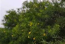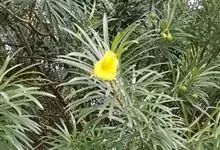 黄花夹竹桃K. Schum.),又名“酒杯花”“柳木子”“黄花状元竹”,是夹竹桃科,黄花夹竹桃属下的常绿乔木植物。高达5m,全株无毛,树皮棕褐色;叶互生,近革质,线形或线状披针形;花大,黄色,具香味,…全部>>