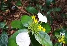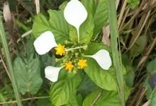 玉叶金花,为茜草科玉叶金花属攀援灌木;叶对生或轮生,卵状;萼片叶状雪白色,聚伞花序顶生,花冠黄色,花柱短而内藏。玉叶金花常野生于丘陵山坡、灌丛、林缘、沟谷、山野、路旁等地,其茎叶味甘、性凉,…全部>>