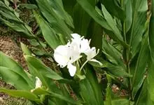 姜花又名野姜花。是姜科姜花属的多年生草本植物,茎高1-2米;叶片长圆状披针形或披针形,叶面光滑,叶背被短柔毛;穗状花序顶生,椭圆形,花芬芳,白色;蒴果卵状三棱形,微黄绿色;种子鲜红色,具橘红色的假种皮。…全部>>