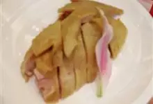 白切鸡又叫白斩鸡,是粤菜系鸡肴中的一种,始于清代的民间酒店。属浸鸡类。其特点为制作简易,刚熟不烂,不加配料且保持原味。白切鸡通常选用三黄鸡与沙姜、蒜茸、葱等食材,慢火煮浸后,晾干切块。成菜后,…全部>>
