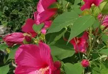 芙蓉葵是锦葵科木槿属植物,又名草芙蓉、大花秋葵,原产于北美。落叶灌木状。叶大、广卵形,叶柄、叶背密生灰色星状毛。花大,单生于叶腋,有白、粉、红、紫等色。喜阳、略耐阴,宜温暖湿润气候,忌干旱,耐水湿,…全部>>