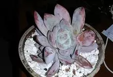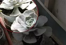 芙蓉雪莲是景天科拟石莲花属的植物。由于叶片表面覆盖着一层厚霜粉,通常呈现出白色;日照增多,温差增大后叶缘、叶尖会呈现出粉红色或橙红色。…全部>>