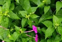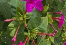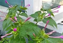 即紫茉莉,英文名:Four-o'clock,Marvel of Peru,为紫茉莉科、紫茉莉属多年生草本植物,一年生栽培。株高50~80cm。根粗壮,茎多分枝而散生。叶对生,卵形或心脏形。花数朵簇生…全部>>