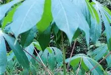 木薯,为大戟科木薯属的一种直立灌木,又名木番薯、树薯。木薯高1.5-3米;块根圆柱状。叶纸质,轮廓近圆形;裂片倒披针形至狭椭圆形;托叶三角状披针形。圆锥花序顶生或腋生,花萼带紫红色且有白粉霜。…全部>>