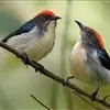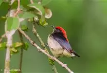 朱背啄花鸟:体重6-8克,体长81-97毫米。是一种小型的黑色及红色啄花鸟。雄鸟顶冠、背及腰猩红色,两翼、头侧及尾黑,两胁灰,下体余部白色。雌鸟上体橄榄色,腰及尾上覆羽猩红,尾黑。亚成鸟清灰色,嘴橘黄,…全部>>