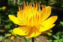 金莲花,毛茛科金莲花属多年生草本植物。基生叶是五角形状,三全裂,边缘呈现锯齿状;两侧的裂片二深裂接近底部;萼片黄色,椭圆状卵形或倒卵形;花瓣属于窄而长;金黄色的花单生或者两三朵组成花序;种子近似倒卵形,…全部>>