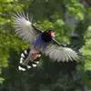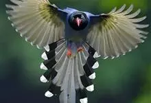 台湾蓝鹊:体长64至65厘米,翼展18至21厘米,尾长约40厘米,尾羽长占了总体长的三分之二。头、脸、颈、喉、胸都是黑色,黄色的眼珠包围黑色的瞳孔,鲜红色的鸟喙、双脚,…全部>>