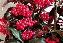 朱砂根是报春花科紫金牛属植物,又名铁凉伞、红铜盘、百两金、大罗伞、开喉箭等,为常绿小灌木,高1~2米,茎粗壮,无毛,除侧生特殊花枝外,无分枝,叶片革质或坚纸质,椭圆形、椭圆状披针形至倒披针形,…全部>>