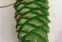 蓬莱松是天门冬科、天门冬属多年生丛生草本植物。宿存,圆柱形肉质根,纵截面为绿色和表面灰色。植株高可达3米。茎呈圆柱形或近四边形,底部木质化,具有灰色或灰褐色。幼嫩的茎在每个节上都被紫绿色鳞片包,…全部>>