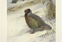 血雉雉科血雉属鸟类,别名血鸡、松花鸡,血雉的雄鸟大覆羽、尾下覆羽、尾上覆羽、脚、头侧、腊膜为红色,故称血雉。其别名甚多,各地皆异。在甘肃,因其胸侧和翅上覆羽沾绿,被称为“绿鸡”;因其羽毛形似柳叶,…全部>>