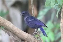 紫啸鸫是雀形目鹟科啸鸫属鸟类,又称黑雀儿,山鸣鸡、乌精。成鸟眼先及颏绒黑色;前额、头顶至背及肩羽和颈侧呈深紫蓝色,羽端具较密集的亮蓝色点斑;腰至尾上覆羽的深紫蓝色较暗而杂黑褐色,…全部>>