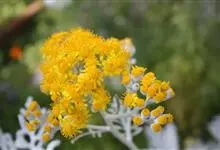 银叶菊,是菊科疆千里光属多年生草本植物。银叶菊的茎灰白色,植株多分枝;叶回羽状裂,正反面均被银白色柔毛;头状花序集成伞房花序,舌状花小,金黄色,管状花褐黄色;花期为6-9月。银叶菊原产于地中海沿岸地区,…全部>>
