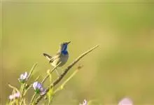蓝点颏亦称“蓝喉歌鸲”,通称蓝靛颏儿。身体大小和麻雀相似,体长12-13厘米,体重17-18克。头部、上体主要为土褐色。眉纹白色。尾羽黑褐色,基部栗红色。颏部、喉部辉蓝色,下面有黑色横纹。下体白色。…全部>>