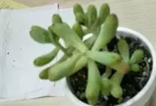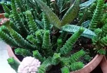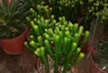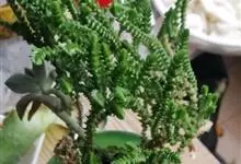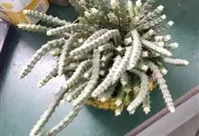 筒叶花月,是景天科青锁龙属的多年生草本植物。植株多分株,灌木状,茎较粗壮,圆柱形,表皮灰褐色;叶片肉质,互生,呈圆筒状,簇生于茎或分枝顶端,叶端呈斜截形,截面为椭圆形;花呈星状,淡白色;花期秋季。…全部>>