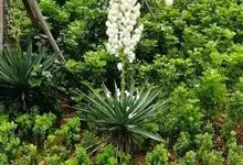 丝兰是天门冬科丝兰属植物。茎短或无茎;圆锥花序烛台状,花朵杯形,下垂,白色;叶基部呈剑形放射状,被白粉,革质;花期8—10月。丝兰原产于北美,在中国长江流域一带和华北地区均有栽培,长江以南地区也有分布。…全部>>