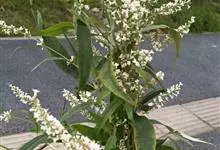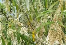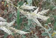 白背枫,马钱科醉鱼草属植物,常绿小灌木,高1-1.5米。嫩枝条四棱形,老枝条圆柱形;叶对生狭椭圆形或披针形,绿色无毛;总状花序窄而长,花冠芳香白色或淡绿色;蒴果椭圆状;种子灰褐色;花期1-10月,…全部>>