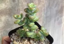 棒叶落地生根是景天科、落地生根属植物。茎直立、粉褐色。叶圆棒形,上表面有沟、粉色,有红褐斑。叶片交互对生,交叉排列成十字形。叶端锯齿上长有很小的幼株、落地后即可生根成活。原产非洲马达加斯加。…全部>>