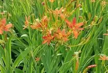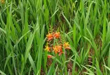 雄黄兰是鸢尾科雄黄兰属多年生草本植物。雄黄兰具扁球径,叶多基生,剑形;花茎由多花给成疏散的穗状花序,花冠漏斗状,深橙红色;蒴果。 花期7-8月,果期8-10月 。雄黄兰因橘红色的花与雄黄颜色相似而得名。…全部>>