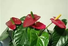 花烛,别名红鹅掌、红掌、安祖花等,为天南星科花烛属的一种多年生草本植物。其茎矮;叶互生,叶片革质,有光泽,阔心形、圆心形,先端钝或渐尖,基部深心形;肉穗花序有细长花序梗,佛焰苞深红色或橘红色,…全部>>