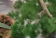 蓬莱松是天门冬科、天门冬属多年生丛生草本植物。宿存,圆柱形肉质根,纵截面为绿色和表面灰色。植株高可达3米。茎呈圆柱形或近四边形,底部木质化,具有灰色或灰褐色。幼嫩的茎在每个节上都被紫绿色鳞片包,…全部>>