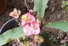 虎刺梅:别称铁海棠,是蔓生灌木植物。茎多分枝,长60-100厘米,直径5-10毫米,具纵棱,密生硬而尖的锥状刺,刺长1-1.5厘米,直径0.5-1.0 毫米,常呈3-5列排列于棱脊上,呈旋转。叶互生…全部>>