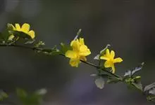 迎春花,木犀科素馨属的多年生木本植物,小枝细长直立或者呈拱形下垂;叶片呈卵形或椭圆形;花单生于叶腋处,苞片呈披针形或椭圆形,花冠为金黄色,花瓣通常为倒卵形或椭圆形;花期在6月。…全部>>
