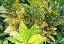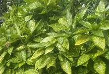 洒金桃叶珊瑚,常绿灌木,原产中国台湾及日本,属于藤本类。 不甚耐寒。小枝粗圆。叶对生,叶片椭圆状卵圆形至长椭圆形,油绿,光泽,散生大小不等的黄色或淡黄色的斑点,先端尖,边缘疏生锯齿。属桃叶珊瑚属、…全部>>