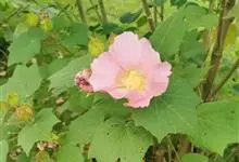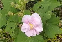 木芙蓉,锦葵科木槿属落叶灌木或小乔木。小枝上有细绒毛;叶片为卵状心形,托叶为披针形,常早落;花单生,花萼为钟形,花冠初为白色或淡红色,后逐渐变为深红色;果实为扁球形,有淡黄色的毛附着。花期8到10月。…全部>>