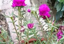 大花马齿苋:一年生草本,高10-30厘米。茎平卧或斜升,紫红色,多分枝,节上丛生毛。叶密集枝端,较下的叶不规则互生,叶片细圆柱形,无毛。花单生或数朵簇生枝端,直径2.5-4厘米,…全部>>