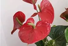 花烛,别名红鹅掌、红掌、安祖花等,为天南星科花烛属的一种多年生草本植物。其茎矮;叶互生,叶片革质,有光泽,阔心形、圆心形,先端钝或渐尖,基部深心形;肉穗花序有细长花序梗,佛焰苞深红色或橘红色,…全部>>