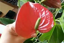 花烛,别名红鹅掌、红掌、安祖花等,为天南星科花烛属的一种多年生草本植物。其茎矮;叶互生,叶片革质,有光泽,阔心形、圆心形,先端钝或渐尖,基部深心形;肉穗花序有细长花序梗,佛焰苞深红色或橘红色,…全部>>