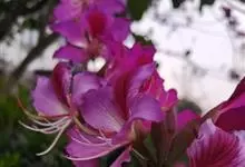 羊蹄甲,别名紫花羊蹄甲、玲甲花,是豆科羊蹄甲属的一种常绿乔木或灌木。树冠开展,枝桠低垂;树皮灰色至暗褐色,近光滑。枝幼时微被灰色短柔毛,后毛脱落;叶硬纸质,近圆形,基部浅心形,…全部>>