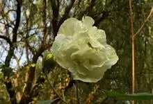 木芙蓉,锦葵科木槿属落叶灌木或小乔木。小枝上有细绒毛;叶片为卵状心形,托叶为披针形,常早落;花单生,花萼为钟形,花冠初为白色或淡红色,后逐渐变为深红色;果实为扁球形,有淡黄色的毛附着。花期8到10月。…全部>>