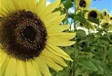 向日葵:是桔梗目、菊科、向日葵属的植物。因花序随太阳转动而得名。是一年生高大草本植物。茎粗壮,高1-3米,不分枝或有时上部分枝,被白色粗硬毛。叶互生,卵状心形或卵形,顶端急尖或渐尖,基生3出脉,…全部>>