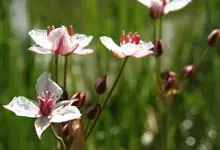 花蔺,为花蔺科花蔺属多年生水生草本。根茎粗壮横生。叶基生,上部伸出水面,线形,三棱状,基部成鞘状。 花:花茎圆柱形,直立,有纵纹。花两性,成顶生伞形花序。外轮花被3,带紫色,宿存;内轮花被3,淡红色…全部>>