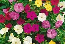 即紫茉莉,英文名:Four-o'clock,Marvel of Peru,为紫茉莉科、紫茉莉属多年生草本植物,一年生栽培。株高50~80cm。根粗壮,茎多分枝而散生。叶对生,卵形或心脏形。花数朵簇生…全部>>