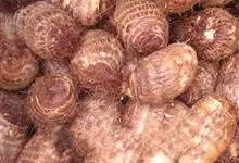 芋头又称芋、芋艿,天南星科植物的地下球茎,形状、肉质因品种而异,通常食用的为小芋头。多年生块茎植物,常作一年生作物栽培。叶片盾形,叶柄长而肥大,绿色或紫红色;植株基部形成短缩茎,逐渐累积养分肥大成肉…全部>>