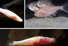 盲鱼是脂鲤目脂鲤科丽脂鲤属鱼类,又称墨西哥丽脂鲤、无眼鱼、盲眼鱼。通体近乎乳白浅肉色,半透明,有珍珠光泽,也有粉红色或黄褐色的;各鳍透明。体长而侧扁;眼晴退化,只剩凹陷的眼眶;头较短;吻端圆钝,…全部>>
