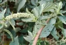 反枝苋是苋科苋属的一年生草本植物。株高达1米;茎密被柔毛;叶菱状卵形或椭圆状卵形,先端锐尖或尖凹,两面及边缘被柔毛,下面毛较密;穗状圆锥花序,顶生花穗较侧生者长;花被片长圆形或长圆状倒卵形,…全部>>