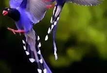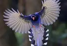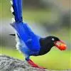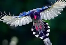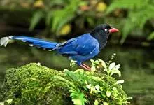 台湾蓝鹊:体长64至65厘米,翼展18至21厘米,尾长约40厘米,尾羽长占了总体长的三分之二。头、脸、颈、喉、胸都是黑色,黄色的眼珠包围黑色的瞳孔,鲜红色的鸟喙、双脚,…全部>>