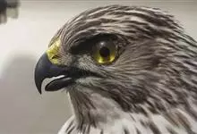 褐耳鹰的体形比苍鹰要小得多,为小型猛禽,体长为31-44厘米,体重217-325克。上体灰色,下体具赤褐色横斑。第6枚初级飞羽外羽片无缺刻,次外侧的4对尾羽具5道黑褐色横斑。眼先具白色短羽。…全部>>